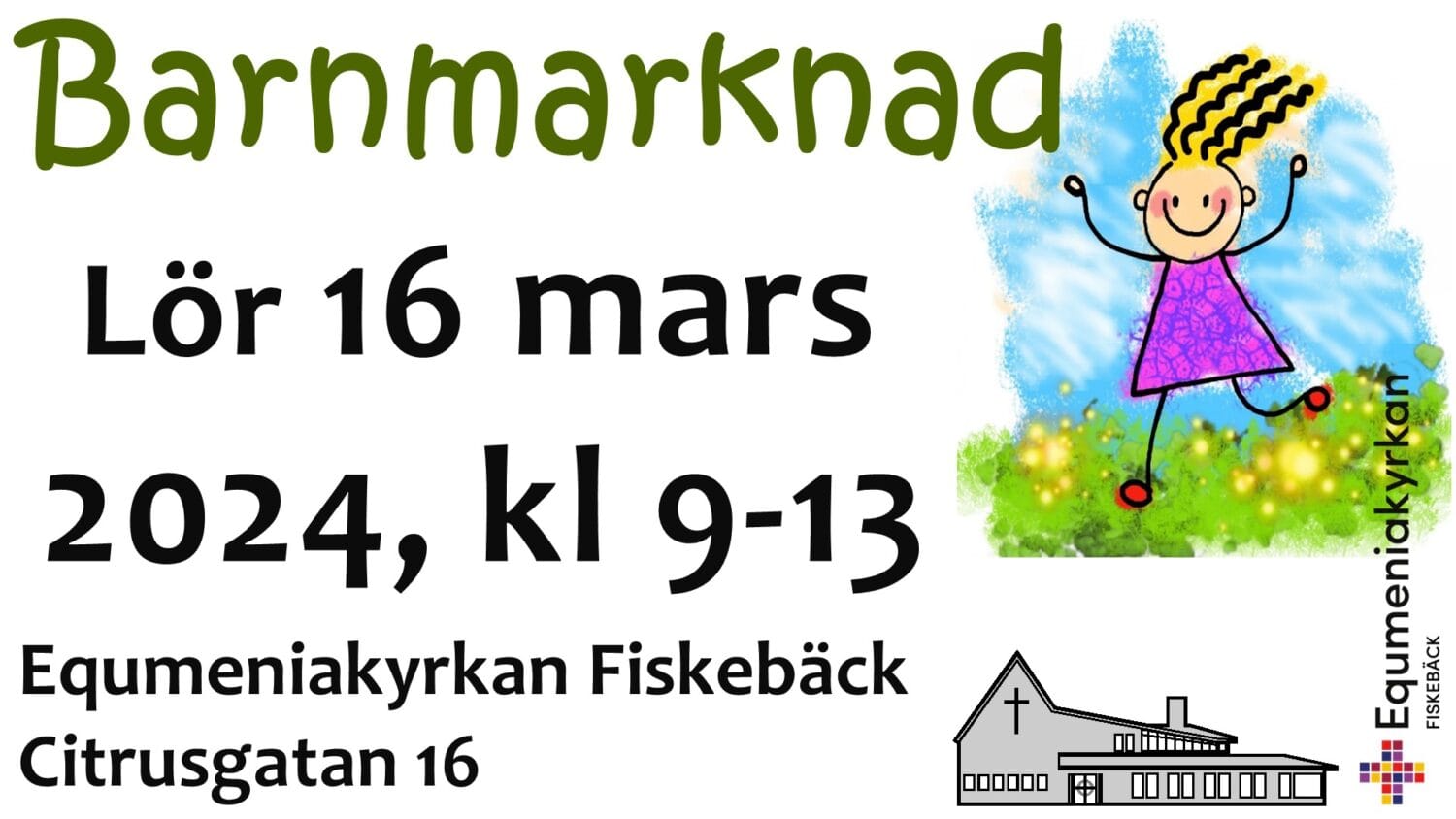 Evenemang, Nyheter, Socialt engagemang Barnmarknad 2024-03-16 Publicerat 24 oktober, 2023 Snart är det dags Barnmarknad 2024-03-16 Hurra! Välkommen till oss före kl 13. Läs mer här Dela