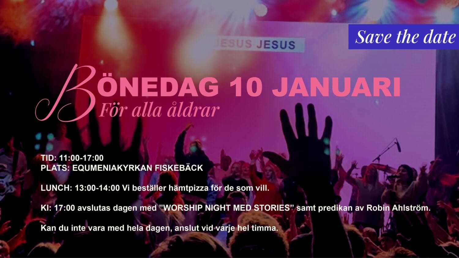Klockan 17:00 avslutas dagen med ”Worship Night med Stories” och predikan av Robin Ahlström.