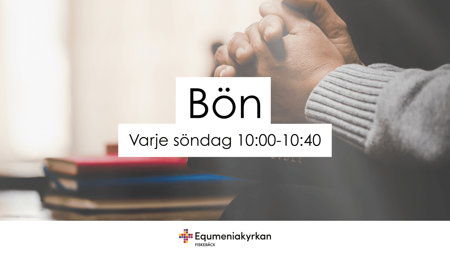 Från och med den 29 mars är alla som vill välkomna till en bönesamling för söndagsgudstjänsten, klockan 10:00 till 10:40. Vi håller till i Akvariet, rummet bakom kyrksalen. Den förebedjargrupp som tjänstgör under veckan leder bönesamlingen. Ingen föranmälan krävs. Välkommen!