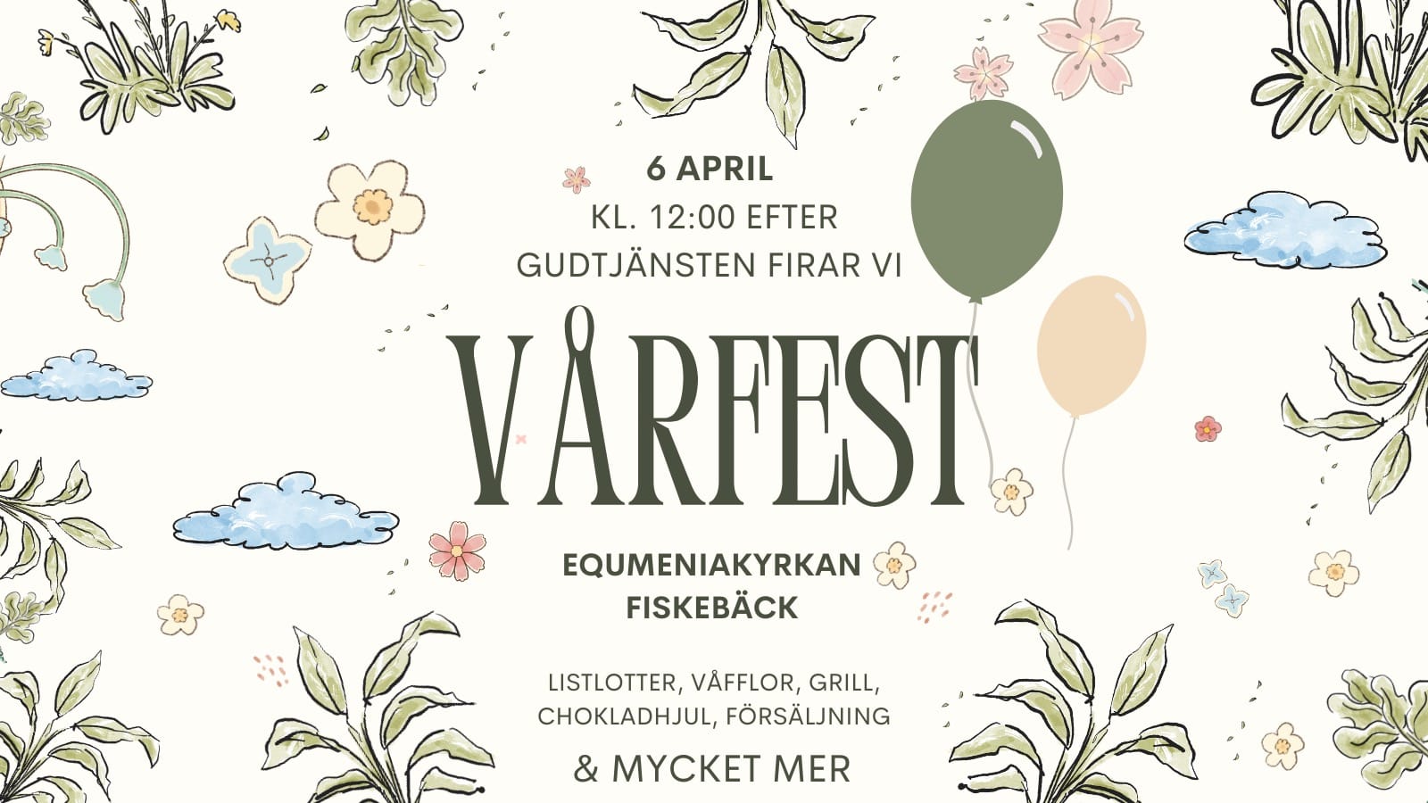 2 evenemang,Försonaren Mark 12:1-12. Peter Baric. Sång och musik: Soul Children. Barnkyrka och Söndagsklubb. Vårfest efter Gudstjänsten. |