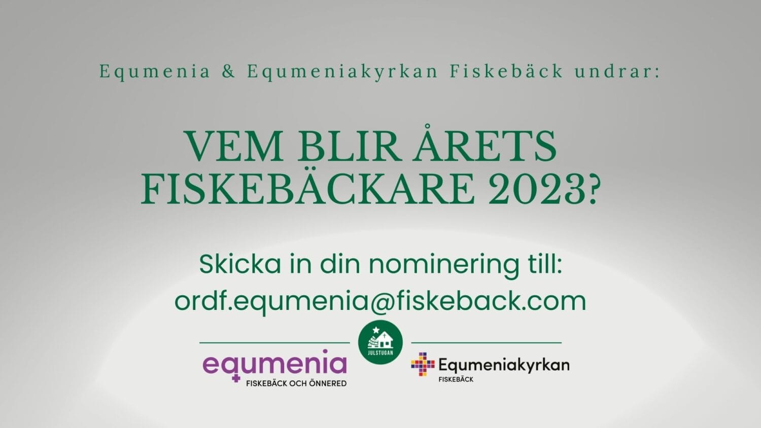 Nu är det dags att utse Årets Fiskebäckare 2023 och du har chans att nominera den eller dem som du vill uppmärksamma lite extra, nån som betyder eller har betytt något särskilt för oss här i Fiskebäck, för Equmenia Fiskebäck och Önnered eller Equmeniakyrkan Fiskebäck.